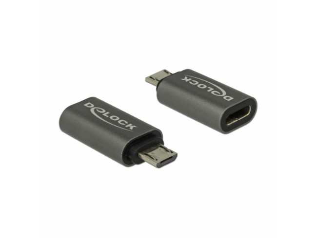 Delock adapter omogoča povezavo naprave z USB mikro-B vmesnikom (npr. pametni telefon) na računalnik z uporabo USB tip-C kabla. Adapter pretvori USB mikro-B ženski vmesnik v USB tip-C ženski vmesnik.