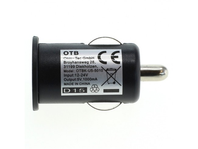 Kvaliteten univerzalni stabilizirani avtomobilski polnilec / adapter proizvajalca OTB. Primeren je za polnjenje različnih naprav (kamere, mobilni telefoni, tablični računalniki ipd.) prek USB priključka. Polnilec / adapter se priklopi v standardno 12V avtomobilsko vtičnico. USB kabel ni priložen. Največji izhodni tok je 1 A. Naprava ima zaščito pred prepolnjenjem, nadtokovno in temperaturno zaščito ter certifikate CE in RoHS.