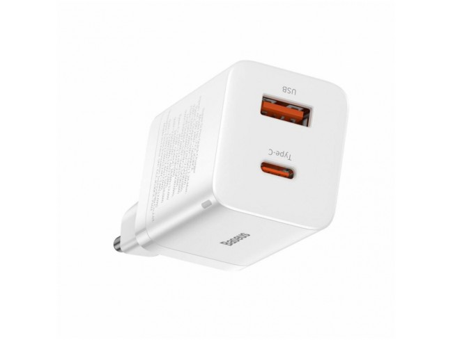 Hišni polnilec 100-240V => 1x USB-A (ž) 1x USB-C 30W za mobilni telefon ali tablični računalnik Baseus Super Si Pro PD3 + QC3 - bel (CCSUPP-E02)