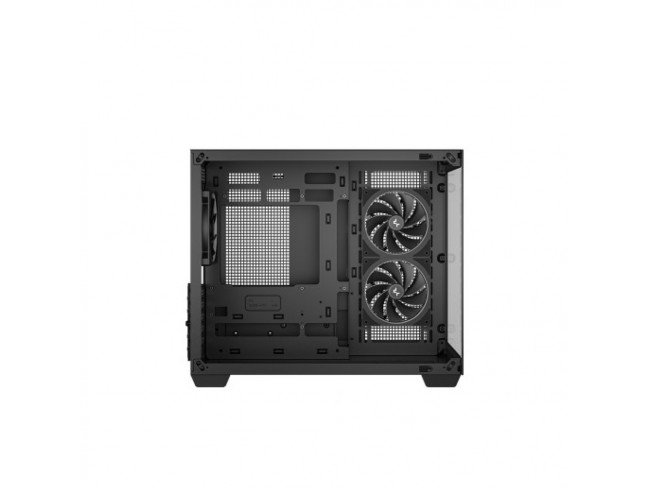Ohišje je opremljeno z dvema ventilatorjema serije FL z obrnjenimi lopaticami na strani in enim standardnim na zadnji strani, ki skupaj tvorijo horizontalni prezračevalni kanal za učinkovito hlajenje. DeepCoolov edinstveni sistem osvetlitve zagotavlja enakomerno osvetlitev v celotnem ohišju.