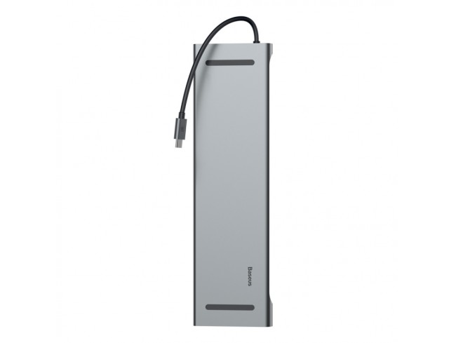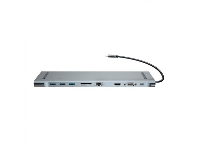 Priklopna postaja USB-C => 3x USB 3.0 tip A USB-C PD 60W 2x HDMI VGA microSD/SD/MMC RJ45 AUX Baseus Enjoyment Series srebrn (CATSX-G0G)