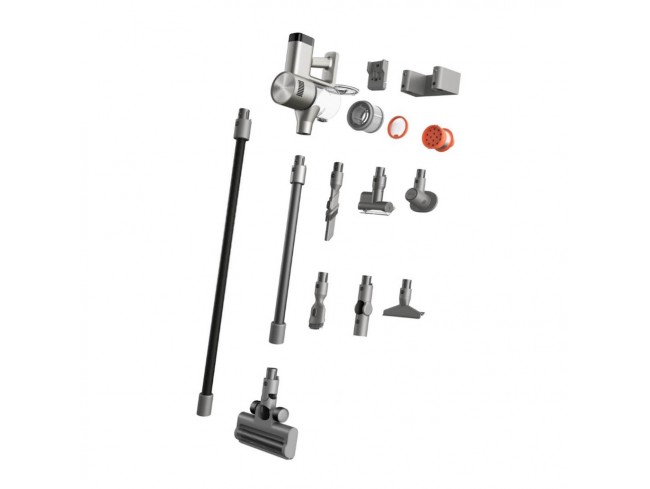 Pokončni sesalnik Xiaomi G30 Max EU ponuja močno sesanje in dolgo življenjsko dobo. Ima 5-stopenjsko filtracijo (učinkovitost do 99,98%; filtrira in ujame drobne delce prahu velikosti do 0,3 µm*, vključno s cvetnim prahom, pršicami in drugimi alergeni, s čimer preprečuje sekundarno onesnaženje in ščiti osebe, nagnjene k alergijam). 14-delna ciklonska tehnologija skrbi za učinkovito ločevanje prahu in zraka, da prepreči zamašitev filtrov, zmanjša obrabo in zagotovi stabilno sesanje. Električna krtača s sistem Anti-tangling* zmanjšuje zapletanje las. V samem pakiranju se nahaja: električna krtača, sofa krtača, mini električna krtača, krtača za hišne ljubljenčke, nastavek 2v1 za sesanje rež, širok nastavek 2v1, glavna cev, gibljiva cev, upogljiv dodatek, stenski nosilec, dodaten nosilec za pritrditev, komplet za montažo na steno, napajalnik.